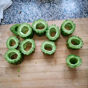 把肉均匀的塞到苦瓜里,出图很漂亮,不要急哟