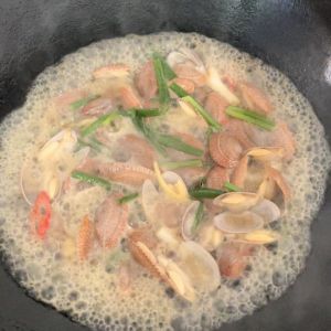 放入少许盐、白胡椒、蚝油,加入水焖煮