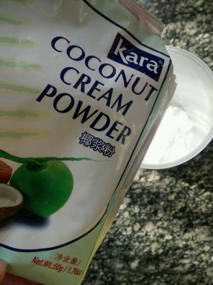 将椰浆粉倒入量杯中,加入150ML的热水根据口感加入白糖的量搅至椰浆粉和白糖溶化