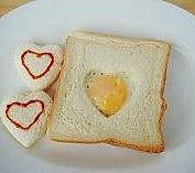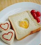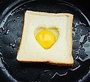 锅内刷一点橄榄油,放入土司,打一个鸡蛋放镂空处。