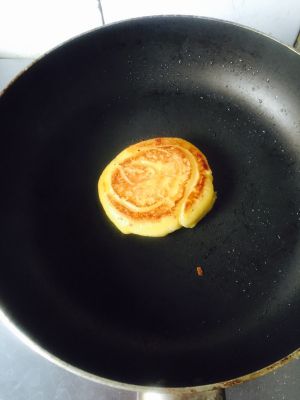 不粘锅放少许橄榄油,小火慢煎,一面变金黄色后翻面继续煎