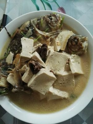 开水漫过鲫鱼,倒入香菇及香菇水(提前用开水把香菇洗净泡好),煮20分钟。