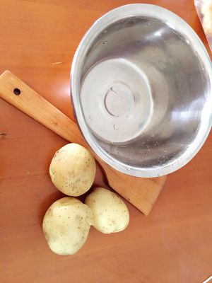 土豆蒸熟压成泥状加入盐;淀粉;胡椒粉拌匀