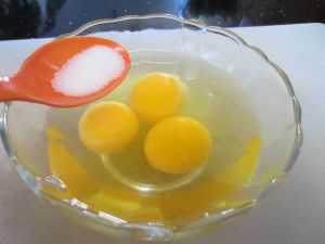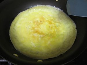 锅中刷层橄榄油,将蛋液入锅煎成蛋饼。