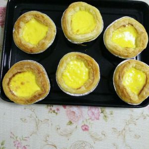 蛋挞皮入烤盘注入蛋挞液百分之八十