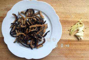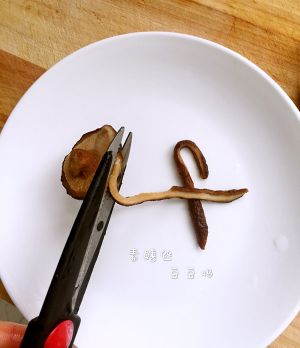 香菇提前泡发,挤去水份用厨房剪剪成丝