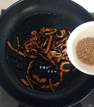 然后倒入素鳝丝和芝麻翻炒均匀即可