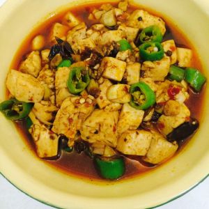 煮两分钟后加入青杭椒,转大火收汁。起锅前放入少许鸡精即可。