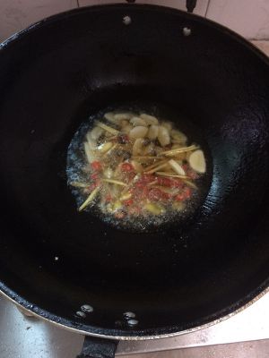 煎好的鱼捞起,锅内留油 把准备好的姜蒜辣椒倒入爆香,然后把鱼放进去,倒半瓶啤酒闷着