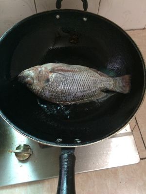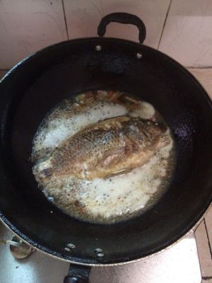 锅内油烧热 多放点油,把洗干净的鱼放锅里煎一下,我的一面煎了3分钟左右