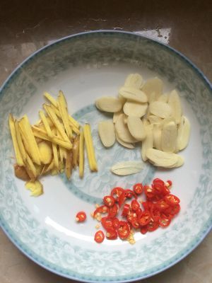 鱼洗干净备用,小米椒切碎,姜切丝,蒜切片