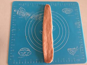 面团擀开,擀成细长的面皮,长度比堡尔美克模具的周长略长一点。