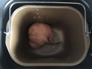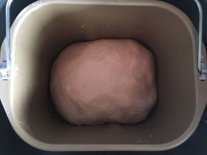 启动面包机的发酵解冻程序,时间为1小时,将面团发酵至2倍大。
