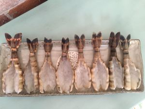 先去虾头,后去虾线,剪刀破开,薄刀压平