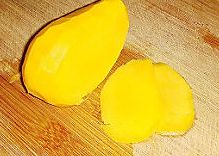 用刀把芒果竖着切成厚度大约0.3公分的片状