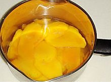 接着把切好的芒果片放入步骤3中煮好的糖液里