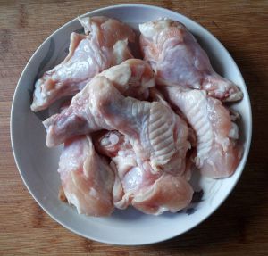 冷水下锅,放入鸡翅,生姜3片,白醋10ML,料酒5ML,焯水,大火烧开再煮2分钟,取出翅根用温水洗净