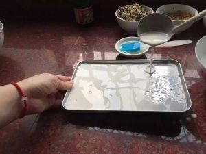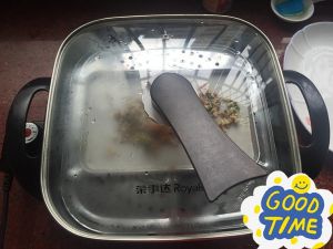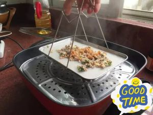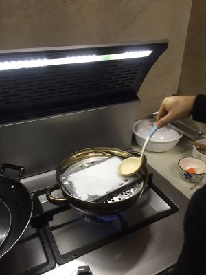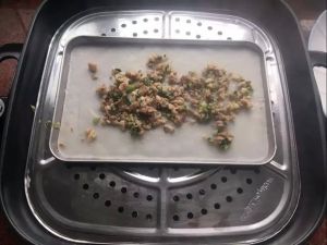 蒸锅加水煮沸,把刷了油的蒸盘放上去,再慢慢倒入粉浆,添加您喜欢的辅料