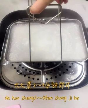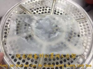上蒸锅大火蒸3分钟,揭开锅盖时肠粉起大泡就是熟了。