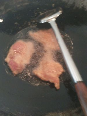 我切得较薄,入味快,用刀背拍打起来,用不了几下就好!省时省力!嘻嘻嘻