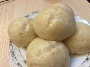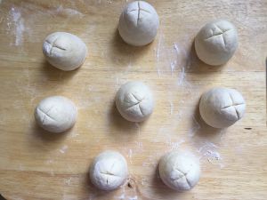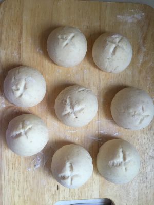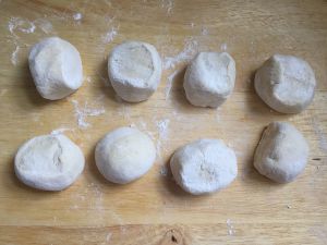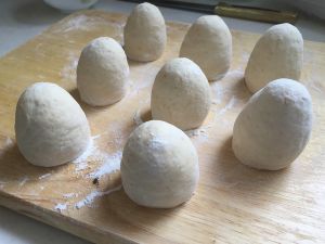 分别把每一个面团揉成光滑的馒头,如图要把馒头搓高,因为发酵之后会变大变矮的