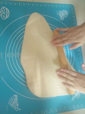 搓面20分钟后加入黄油揉致完全融合不沾手,盖上保鲜膜发酵至两倍大