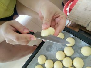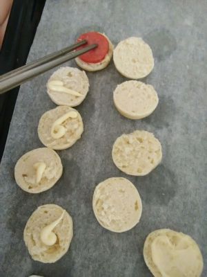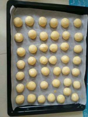 烤盘铺上油纸,扫上蛋液,上下165度25分钟