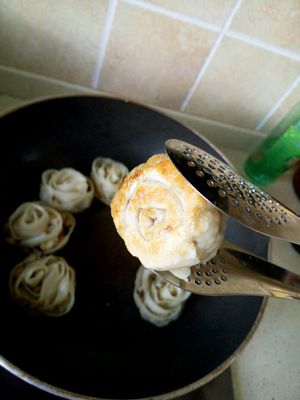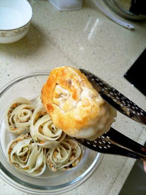 煎至底部金黄,就可以了。或者亲们可以按生煎包的煎法去做,撒上葱花或者黑芝麻也是可以的哦