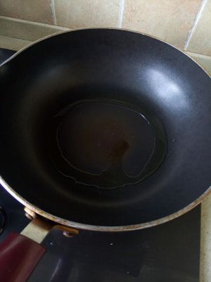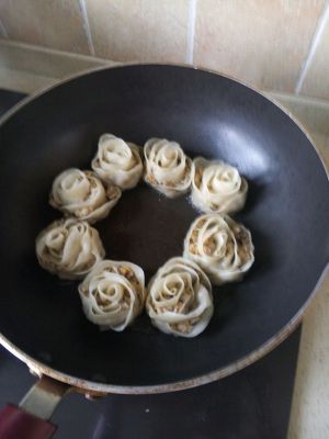 蒸熟后,另起一锅,热锅凉油,待油温7成热时,下饺子