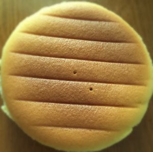 当当当当~~~两个窟窿很扎眼对不对……因为我没找到牙签,随手用一次性筷子去扎,原因是看它熟不熟,抽出来筷子上很干净没有面糊说明熟了……