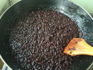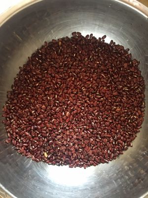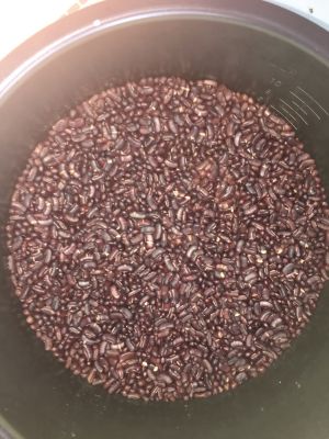 用电饭煲像蒸米饭一样将红豆蒸熟。(看着干,实际下面有少许水)