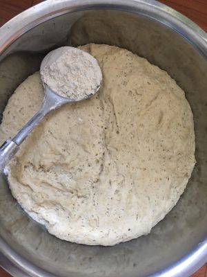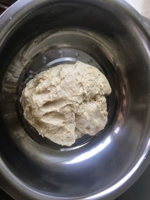 面粉加少许食用碱和白糖拌匀,安琪酵母用温水融化,加入面粉,揉成坨