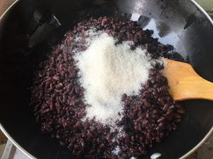 炒锅加少许油,把蒸好的红豆放入搅拌,加入白糖,白糖量为红豆的三分之一到二分之一