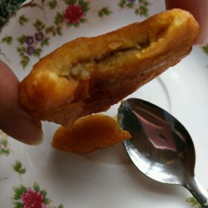 可以两块面压扁中间夹馅,对了煎的时候一定要小火,大火容易外面焦了里面还生