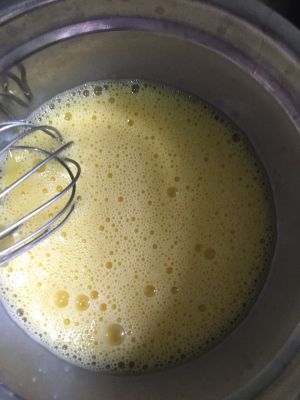 牛奶中加入白糖,倒入鸡蛋液中搅拌均匀