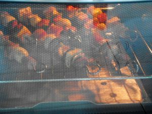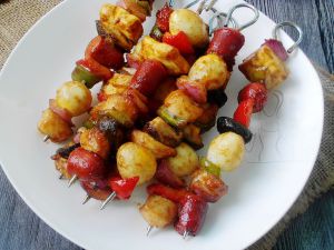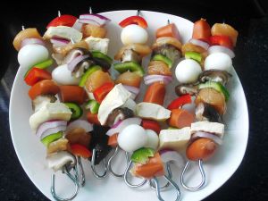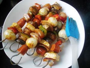 烤箱用烤肉功能预热200度上下火,把串放入烤20分钟