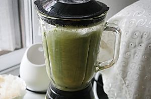 薄荷叶洗净后放入搅拌机,倒入一点清水打成薄荷汁。