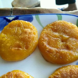 放小量水至压力锅把南瓜煮熟,放糖,捣烂成漫瓜泥,再放入糯米粉,揉成粉团,再取乒乓球大小的粉团搓圆压扁放入托盘内(托盘内先涂点花生油,防止粘底),再放入烧开的水中蒸20分钟后就熟了,然后拿起,放凉。