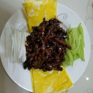 葱丝,黄瓜丝,鸡蛋饼拼盘!