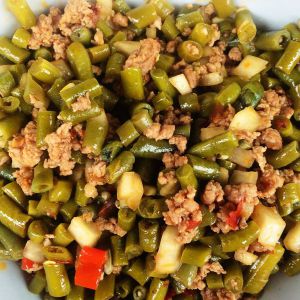 泡豇豆切成小丁,我还配了点泡辣椒和泡萝卜。可以增加些辣味。