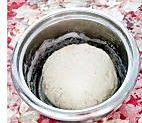 面粉中加入少许盐和热水,搅拌成絮后用手揉成光滑的面团,盖上保鲜膜,放在温暖的地方醒发约1小时后,取出排气,继续揉,重新醒发15分钟后基础面团即完成