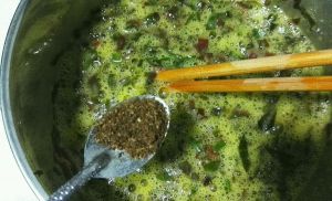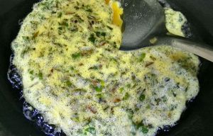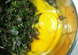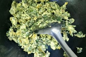 用铲子慢慢搅拌,等鸡蛋香椿定型加快翻炒速度,一直到鸡蛋香椿出现黄色。原味却鲜香,开动吧!