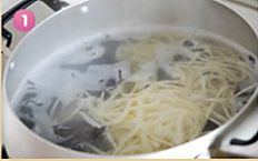 锅中倒入清水,放在电磁炉上,水开后放入面条,泡发的木耳一起煮,这样就不用单独焯水木耳了。适当加一点盐和玉米油。