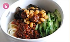 放入适量的黄豆焖肉,夏日凉面就做好啦。