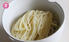 煮好的面条,过凉开水,沥干放入碗中。木耳沥干备用。