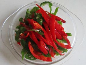 放入炒好的青椒榨菜肉丝,将其它的以同样方法做好。
