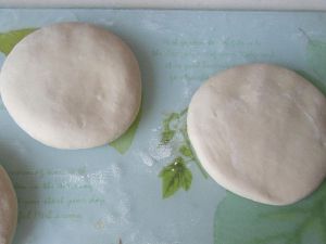将发好的面整理成团, 饧上十五分钟, 按成圆饼;