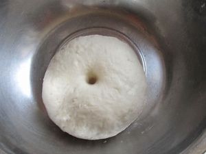 用牛奶,酵母合成软硬适中的面, 发酵到按下手指不回缩;