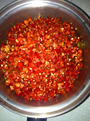辣椒的选择十分重要,我选用的是南昌本地红尖椒,皮薄肉厚。如果选用肉质薄的辣椒会出现皮肉分离的现象,影响口感。