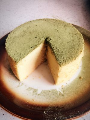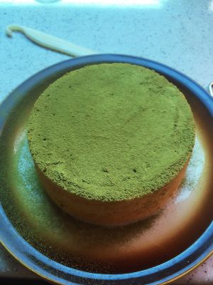 将抹茶粉用筛均匀撒在戚风表面即可。